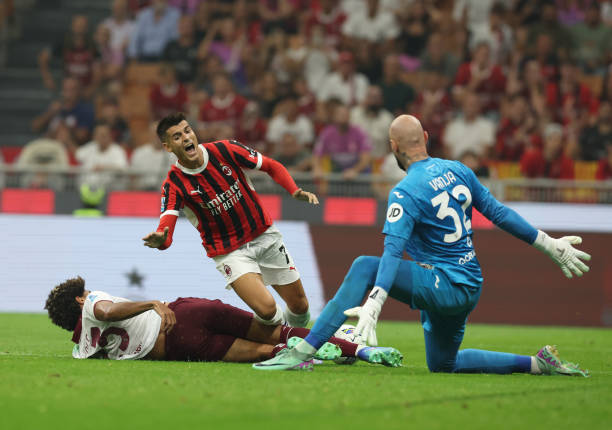 Ở trận ra mắt chính thức AC Milan, tiền đạo tân binh Alvaro Morata đã ghi 1 bàn giúp đội nhà thoát thua trước Torino. |