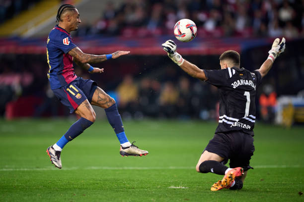 Trước trận, trên sân Estadi Olímpic Lluís Companys, cầu thủ và NHM hai đội đã dành 1 phút mặc niệm cho hơn 200 nạn nhân thiệt mạng vì thảm hoạ lũ quét tại miền đông Tây Ban Nha ![]() Sau đó, nữ cầu thủ Barca, Aitana Bonmati trình diện Quả bóng vàng 2024 ![]() Trong khi đó, Yamal ra mắt giải Kopa Trophy 2024 trước CĐV nhà ![]() Về phía Lewandowski, tuyển thủ Ba Lan trình diện danh hiệu Cầu thủ xuất sắc nhất La Liga tháng 10 ![]() Trước Espanyol, Barca chơi theo sơ đồ 4-2-3-1 với Lewandowski đá tiền đạo cắm. Hỗ trợ tấn công cho Lewy là Yamal, Olmo và Raphinha, trong đó Olmo chơi ở vị trí số 10. HLV Flick gây bất ngờ khi bố trí hậu vệ 18 tuổi Fort đá chính thay Kounde ![]() Bên kia chiến tuyến, Espanyol thi đấu phòng ngự, phản công theo sơ đồ 4-1-4-1 với Javi Puado (ảnh) đá tiền đạo cắm ![]() Ép sân ngay khi trọng tài nổi hồi còi khai cuộc, Barca sớm có bàn mở tỉ số. Phút 12, Yamal vẩy má ngoài điệu nghệ chuyền cho Olmo dứt điểm 1 chạm đưa Barcelona dẫn trước 1-0 ![]() Olmo ăn mừng bàn thắng mở điểm ![]() Làm chủ cuộc chơi sau pha lập công của Olmo, Barca không mất nhiều thời gian để có bàn thắng thứ hai. Phút 23, Casado thả bóng tinh tế loại bỏ hàng thủ Espanyol giúp Raphinha ghi bàn trong thế đối mặt thủ môn Joan Garcia ![]() Raphinha ghi 11 bàn/15 trận cho Barca mùa này, còn Casado có 3 kiến tạo ở 3 trận gần nhất (Bayern, Real và Espanyol) ![]() Sau bàn thắng của Raphinha, Barca để Espanyol đưa bóng vào lưới ở phút 27, nhưng bàn thắng của Jofre Carreras không được công nhận vì lỗi việt vị ![]() Bốn phút sau bàn thắng không được công nhận, Espanyol thủng lưới lần thứ ba. Phút 31, trong pha phản công, nhận đường chuyền của Balde, Olmo dứt điểm hiểm hóc từ ngoài vòng cấm nâng tỉ số lên 3-0. Olmo hoàn tất cú đúp, ghi 5 bàn/6 trận cho Barca ![]() Những phút cuối hiệp 1, Barcelona có thêm 2 cơ hội ngon ăn nữa nhưng Lewandowski và Pedri không thể tận dụng ![]() Dẫn 3-0 ở hiệp 1, HLV Hansi Flick đã đưa De Jong và Fermin Lopez vào thay Casado và Olmo đầu hiệp 2, đồng thời chỉ đạo học trò giảm nhịp độ trận đấu ![]() Ngược lại, Espanyol đẩy cao đội hình tấn công, gây không ít khó khăn cho Barca ![]() Phút 58, Espanyol một lần nữa đưa bóng vào lưới Barcelona nhưng bàn thắng của Tejero không được công nhận vì lỗi việt vị. Năm phút sau đó, Javi Puado lập công rút ngắn tỉ số xuống còn 1-3 cho đội khách ![]() Phút 78, Espanyol lần thứ tư đưa bóng vào lưới Pena nhưng bàn thắng của Javi Puado không được công nhận vì bóng đã đi hết đường biên ngang trước khi chân sút người TBN volley vào lưới ![]() Khoảng thời gian cuối trận, Barca kiểm soát hoàn toàn thế trận và không để Espanyol tạo thêm cơ hội ngon ăn nào ![]() Phút 90+3, Fati phối hợp 1-2 ăn ý với Fermin Lopez rồi sút tung lưới Espanyol, nhưng bàn thắng không được công nhận vì lỗi việt vị ![]() Bàn thắng không được công nhận của Fati là tình huống đáng chú ý cuối cùng trận này. Chung cuộc, Barca thắng 3-1 nhờ cú đúp của Olmo và bàn thắng của Raphinha, qua đó nới rộng cách biệt với đội thứ hai Real Madrid lên thành 9 điểm, nhưng đá nhiều hơn đại kình địch 1 trận KẾT QUẢ VÀ LỊCH THI ĐẤU VÒNG 12 LA LIGA