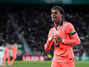 Tỏa sáng khi góp dấu giày vào cả 3 bàn thắng của Barcelona, Lamine Yamal đã đóng vai trò then chốt giúp đội bóng xứ Catalan đánh bại Elche, qua đó tạm thời nới rộng khoảng cách với Real Madrid trên BXH lên 4 điểm. |