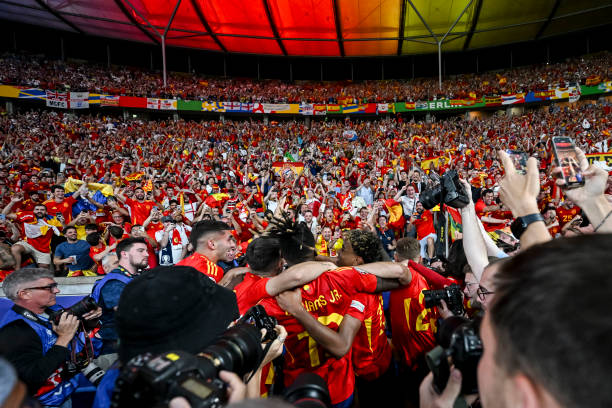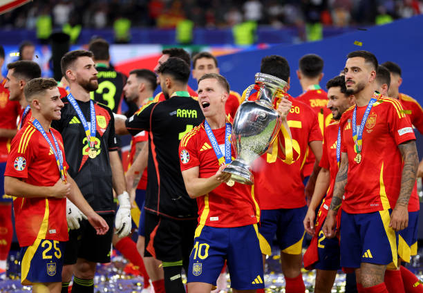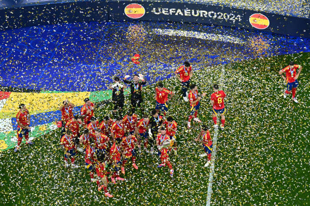 Tây Ban Nha đã đi vào lịch sử với tư cách đội tuyển đầu tiên giành 4 chức vô địch EURO. Có thể hiểu sự phấn khích tột độ của thầy trò De La Fuente trên bục vinh quang. |