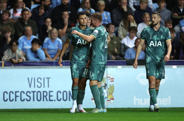 2 bàn thắng vào những phút thi đấu cuối cùng của Djed Spence và Brennan Johnson đã giúp Tottenham nguợc dòng truớc Coventry. |