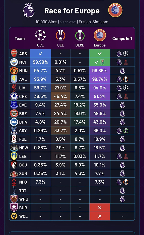 ![]() Carrick sắp giúp M.U tham dự UCL sau 2 năm vắng bóng M.U giành lợi thế lớn trong cuộc đua cạnh tranh vé Champions League 2026-27 nhờ sự trợ giúp của Arsenal. Rạng sáng nay, trong trận tứ kết lượt đi UCL với Sporting Lisbon, Pháo thủ giành chiến thắng với tỉ số 1-0 nhờ pha làm bàn duy nhất của Kai Havertz. Chiến thắng này giúp Arsenal chiếm ưu thế lớn trong cuộc đua giành vé vào bán kết Champions League trước trận lượt về với Sporting vào ngày 16/4 trên sân Emirates. Không chỉ vậy, Arsenal còn trở thành CLB thứ 4 giành vé dự UCL mùa tới sau Bayern, Barca và PSV. Đồng thời, Pháo thủ còn giúp Premier League giành suất thứ 5 tham dự giải đấu danh giá nhất châu Âu mùa 2026-27. Đây là suất mà UEFA trao cho 2 quốc gia có thành tích tốt nhất ở các cúp châu Âu mùa này. Bóng đá Anh hiện đang dẫn đầu BXH với điểm số trung bình là 25,013. Nhờ vượt trội so với quốc gia xếp thứ 3 (Đức - 19,714), Premier League đã chắc chắn kết thúc trong top 2. Theo Opta, nhờ thành tích của Arsenal, M.U nắm gần 95% cơ hội giành vé dự UCL mùa tới. Hiện tại, Quỷ đỏ đứng thứ 3 trên BXH Premier League, hơn đội xếp thứ 5 là Liverpool 6 điểm. Ở 8 vòng cuối, M.U chạm trán 2 đối thủ cạnh tranh vé Champions League là Chelsea và Liverpool. Với khoảng cách hiện tại, thầy trò Michael Carrick vẫn có cơ hội lọt vào top 5 chung cuộc ngay cả khi sảy chân trước The Blues và The Reds. Thậm chí, M.U sở hữu gần 100% cơ hội giành vé tham dự cúp châu Âu mùa tới (Champions League, Europa League hoặc Conference League). Đây là tin vui với NHM M.U, bởi Quỷ đỏ đã không được tham dự Champions League trong 2 mùa giải gần nhất. Riêng ở mùa này, M.U không góp mặt ở các cúp châu Âu do chỉ cán đích ở vị trí thứ 15 trên BXH Premier League 2024-25. Việc M.U có thể trở lại UCL sẽ giúp đội bóng thu hút thêm những cầu thủ chất lượng ở kì chuyển nhượng mùa hè năm nay, qua đó tiếp tục quá trình tìm lại hào quang một thời. Cơ hội giành vé dự cúp châu Âu của các CLB Premier League ![]() ![]() |