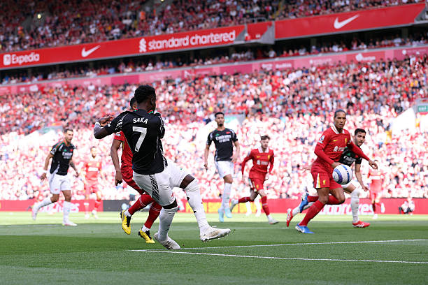 Ngay ở phút thứ 3, Arsenal đã tạo ra cơ hội từ cú đá phạt của Odegaard. Bukayo Saka băng xuống dứt điểm nhưng đưa bóng đi chệch khung thành của Alisson trong gang tấc