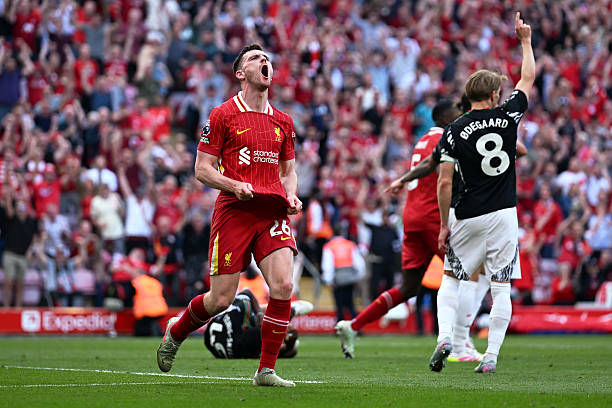 Chưa kịp trấn tĩnh sau bàn thua đầu tiên, Arsenal đã phải nhận bàn thua thứ 2 chỉ sau đó 1 phút. Salah đã chuyền bóng xé toang hàng thủ của Arteta để Szoboszlai băng xuống căng ngang. Ở phía trong, Luis Diaz dễ dàng dứt điểm vào lưới trống, nâng tỉ số lên 2-0