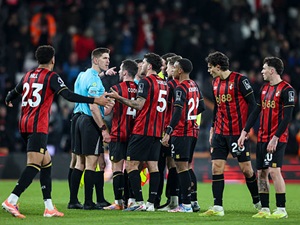 | Thua Arsenal, Bournemouth nổi trận lôi đình với trọng tài | ||