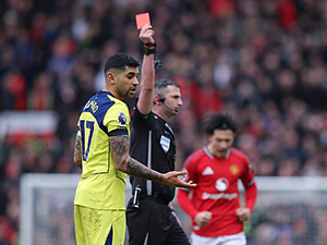 Khi thế trận đang cân bằng, trung vệ đội trưởng Cristian Romero đã lĩnh thẻ đỏ trực tiếp, khiến Tottenham gặp rất nhiều khó khăn, để rồi phải nhận thất bại 0-2 trên sân của Man Utd. |