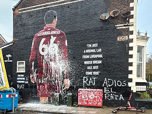 NHM Liverpool một lần nữa đã phá hoại bức tranh tường của hậu vệ Trent Alexander-Arnold bên ngoài SVĐ Anfield. |