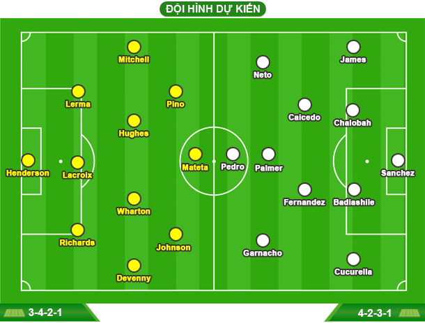 - CHELSEA: Vắng Dario Essugo, Levi Colwill và Tosin Adarabioyo (chấn thương). Khả năng ra sân của Cole Palmer và Reece James còn bỏ ngỏ.
