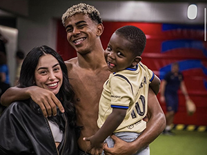 Lamine Yamal đã chia vui với bạn gái và em trai trong phòng thay đồ sau khi lập dấu mốc ấn tượng ở trận Barcelona giành chiến thắng trước Olympiacos tại Champions League.